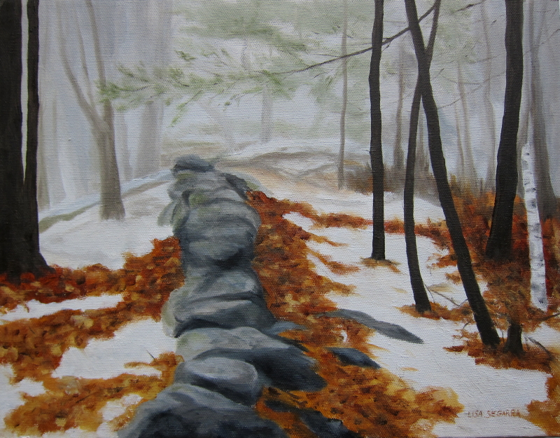 Stonewall in the Snow Posted on September 6, 2014 by lisasegarra Oil on canvas. This is based on a photo taken on a walk through the woods on a misty day. Share this: Click to share on Facebook (Opens in new window) Facebook Click to share on X (Opens in new window) X Like Loading... Related